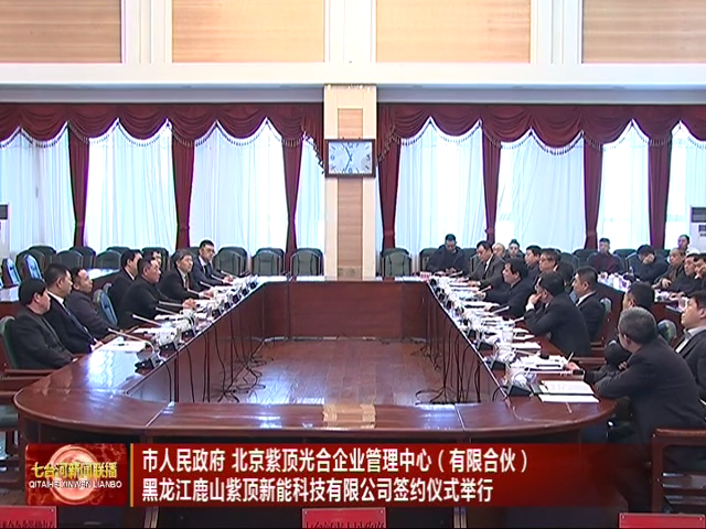 2019年1月20日上午,七臺河市人民政府、北京紫頂光合企業(yè)管理中心(有限合伙)、黑龍江鹿山紫頂新能科技有限公司簽約儀式在市專家接待中心舉行。市委書記楊廷雙,市委副書記、市長賈君,市委常委、秘書長蔣和慶,市政府副市長王義光,市政府秘書長陳志、鹿山集團鐘金海等領(lǐng)導(dǎo)出席簽約儀式。市委常委、副市長安虎賁主持簽約儀式。
